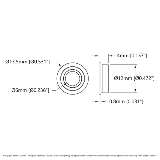 6mm ID Flanged Ball Bearing (12mm OD, 4mm Thickness) - 2 Pack
