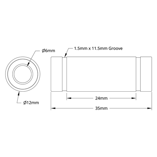6mm ID Linear Ball Bearing (12mm OD, 35mm Length) - 2 Pack
