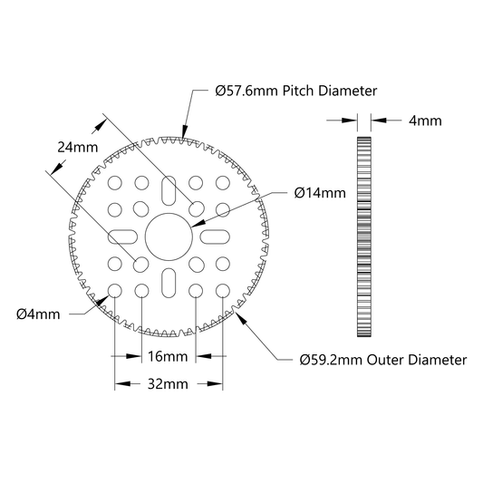 74 Tooth Hub-Mount Gear (MOD 0.8, 4mm Thick Acetal)