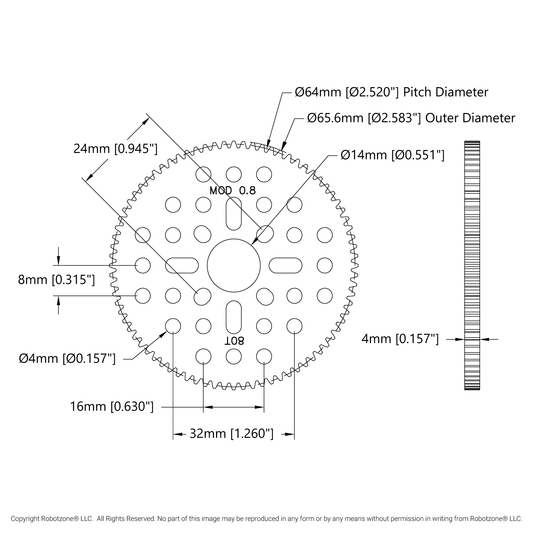 80 Tooth Hub-Mount Gear (MOD 0.8, 4mm Thick Acetal)