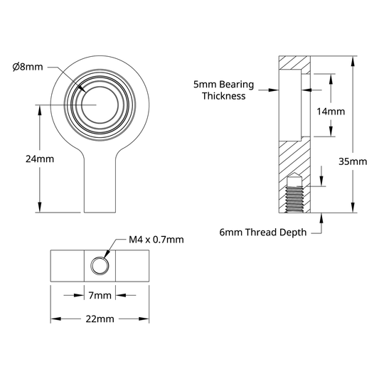 8mm Bore 1-Side, 1-Post Pillow Block (24mm Height)