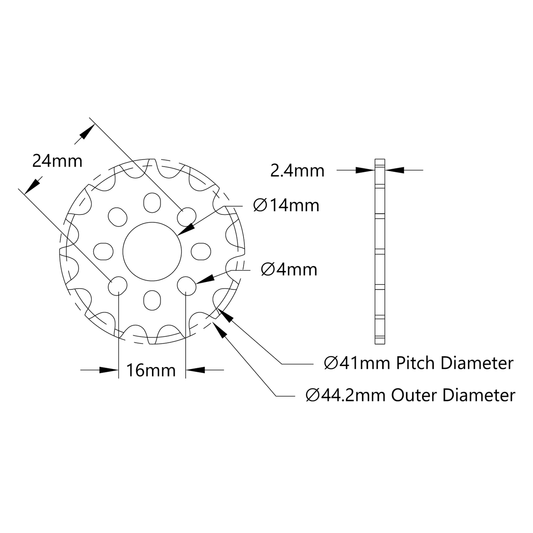 8mm Pitch Acetal Hub-Mount Sprocket (14mm Bore, 16 Tooth)
