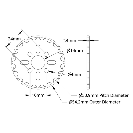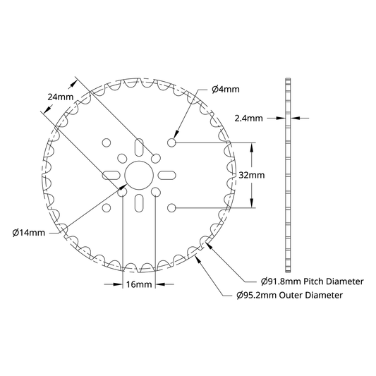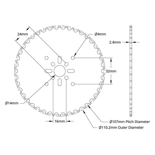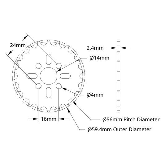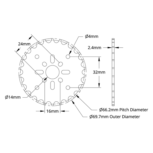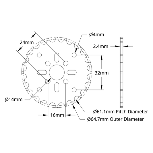 8mm Pitch Acetal Hub-Mount Sprocket (14mm Bore, 24 Tooth)