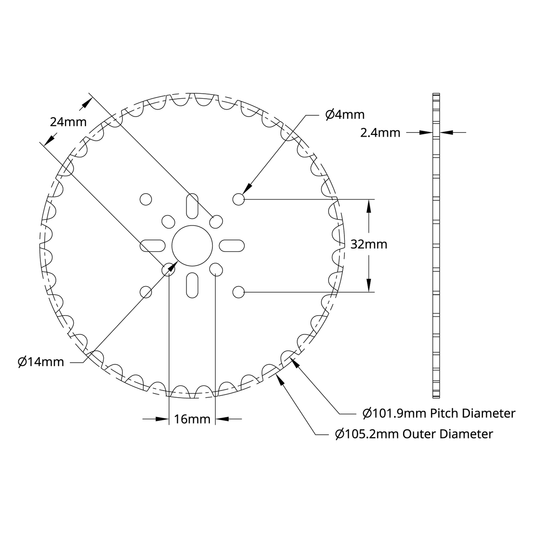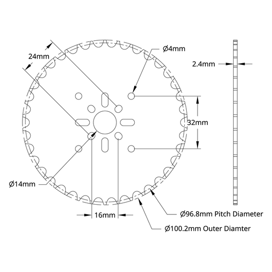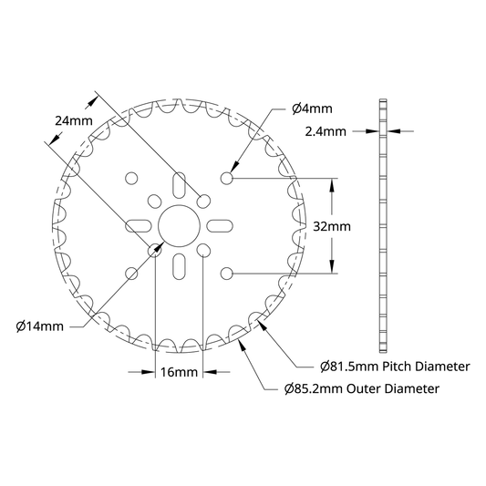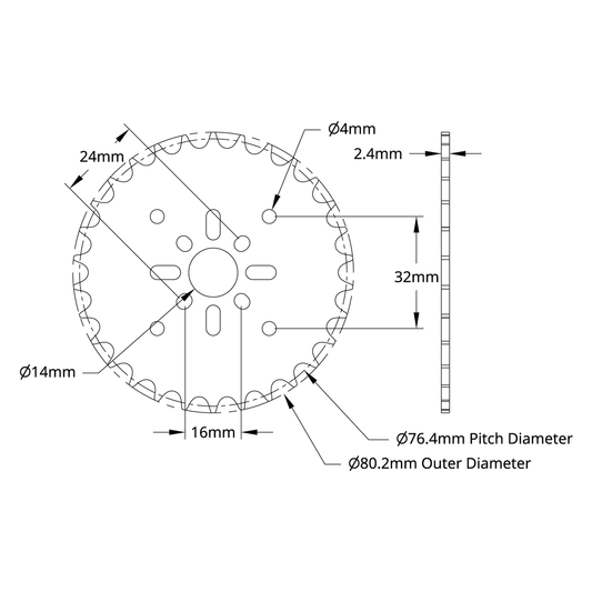 8mm Pitch Acetal Hub-Mount Sprocket (14mm Bore, 32 Tooth)