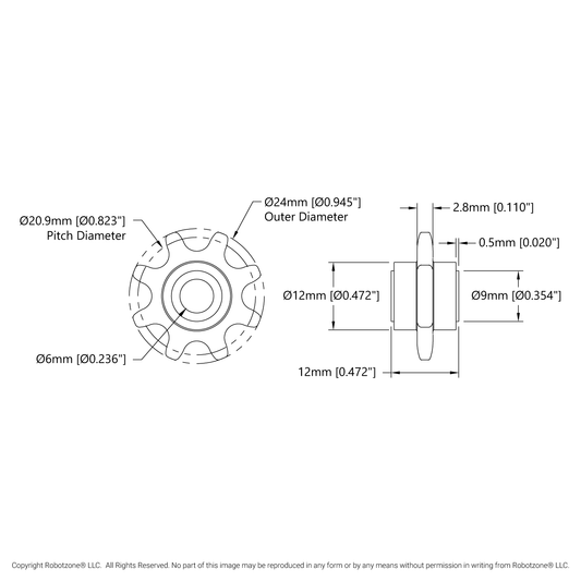 8mm Pitch Slip-Fit Idler Sprocket (6mm Bore, 8 Tooth) - 2 Pack