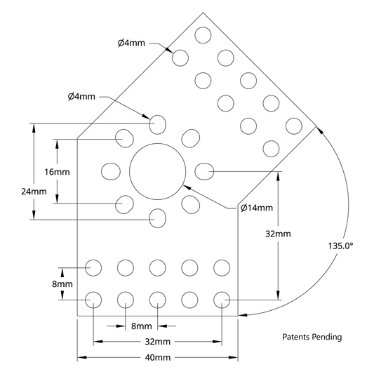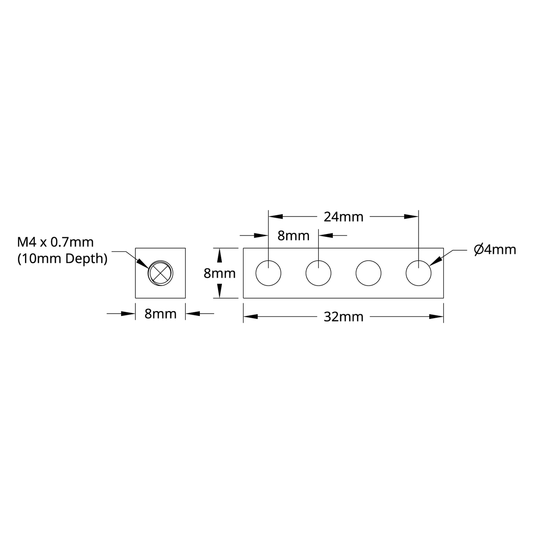 1106 Series Square Beam (4 Hole, 32mm Length)