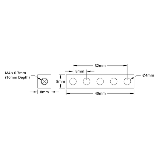 1106 Series Square Beam (5 Hole, 40mm Length)
