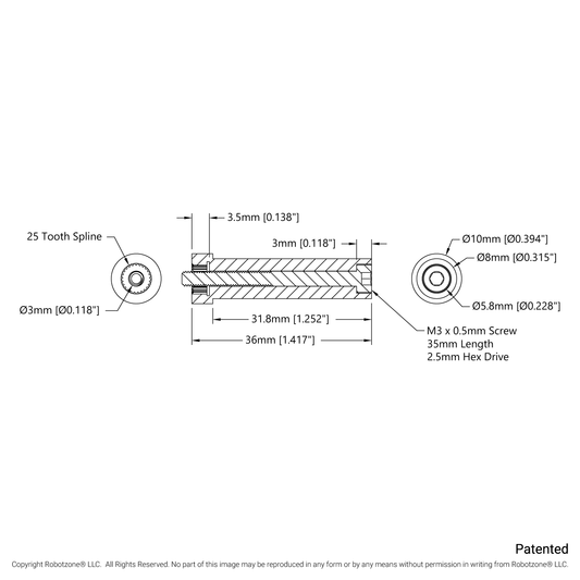 8mm Round Servo Shaft (25 Tooth Spline, 36mm Length)