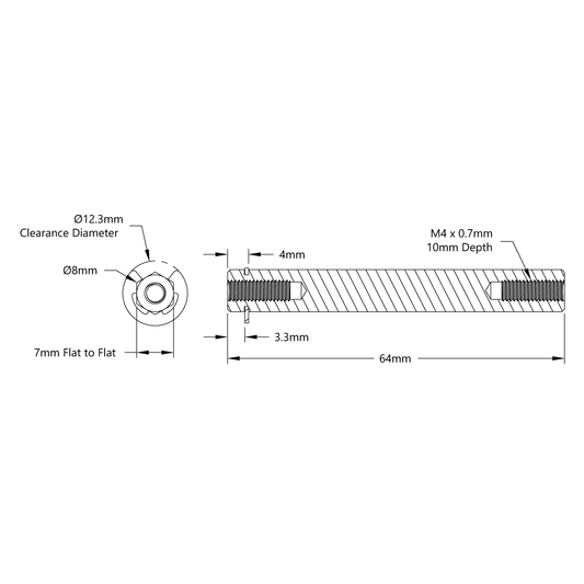 8mm REX™ Shaft with E-Clip (Stainless Steel, 64mm Length)