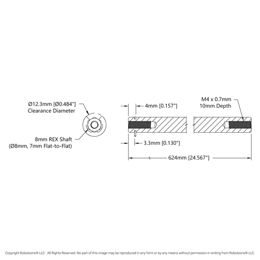 8mm REX™ Shaft with E-Clip (Stainless Steel, 624mm Length)