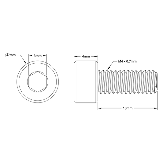 M4 x 0.7mm Zinc-Plated Socket Head Screw (10mm Length) - 25 Pack