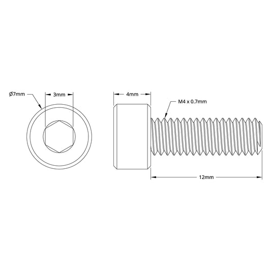 M4 x 0.7mm Zinc-Plated Socket Head Screw (12mm Length) - 25 Pack