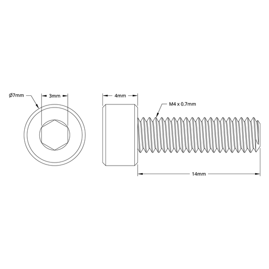 M4 x 0.7mm Zinc-Plated Socket Head Screw (14mm Length) - 25 Pack