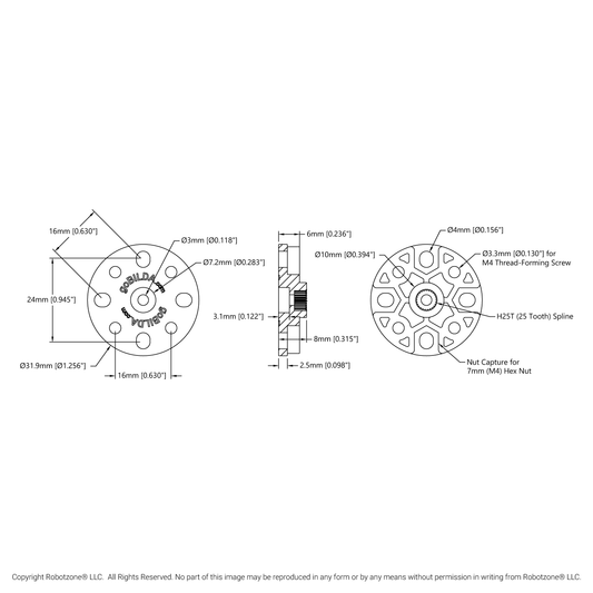 Plastic Servo Hub (H25T Spline, 32mm Diameter)