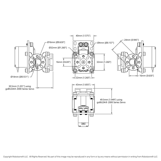 Shark-2 Servo Gearbox (0.28 sec/60°, 36 RPM, 944 oz-in Torque, 1260° Rotation) Feedback Mode