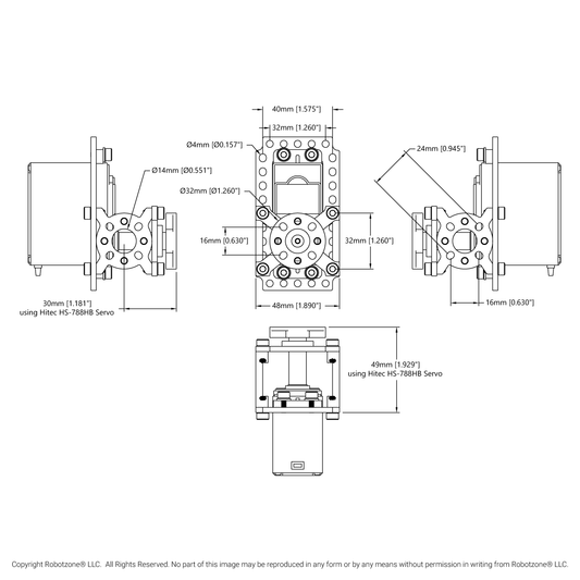Shark-4 Servo Gearbox (0.56 sec/60°, 18 RPM, 1888 oz-in Torque, 630° Rotation) Continuous Mode