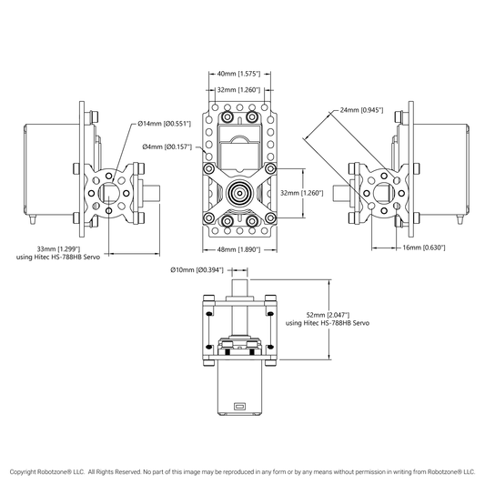 Shark-2 Servo Gearbox (0.28 sec/60°, 36 RPM, 944 oz-in Torque, 1260° Rotation) Continuous Mode