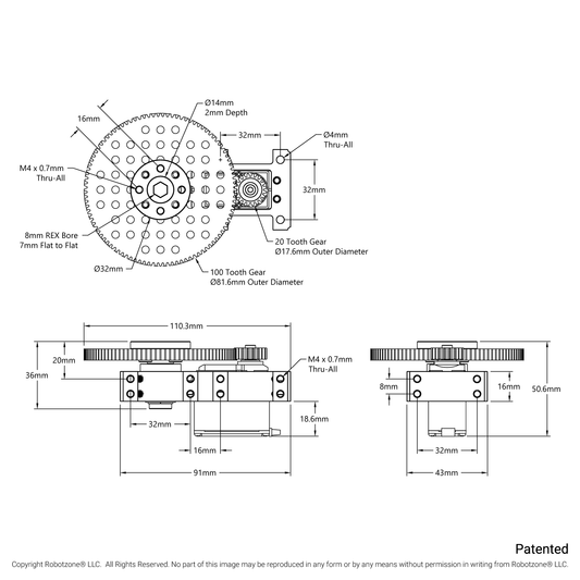 Servo-Driven Gear Rack Kit (11kg Thrust, 145 mm/sec, Dual Gear Rack)