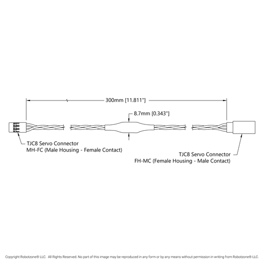 Signal-Boosting Servo Extension (3-Pos TJC8, MH-FC to FH-MC, 300mm Length)