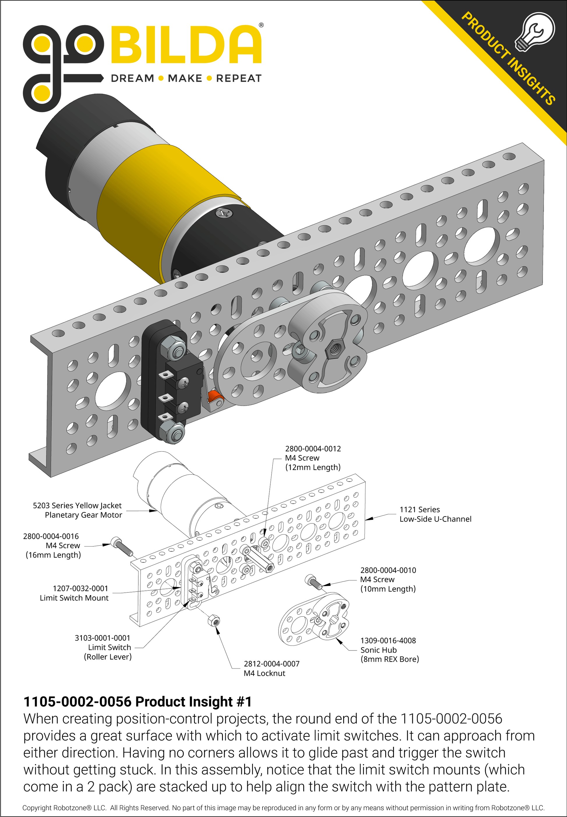 This 2-hole Round-End Pattern Plate is made of 2.5mm thick aluminum—striking a great balance between weight and strength. The 16mm goBILDA® pattern, slotted to 24mm across center, repeats down the length of the plate, providing many mounting options. The 14mm holes can be used for 14mm OD bearings as well as parts which contain a 14mm protrusion (like hubs) to ensure concentricity. The 32mm width makes for a more compact option when compared to 1123 Series Pattern Plates. The rounded shape provides added clearance for nearby rotating components.