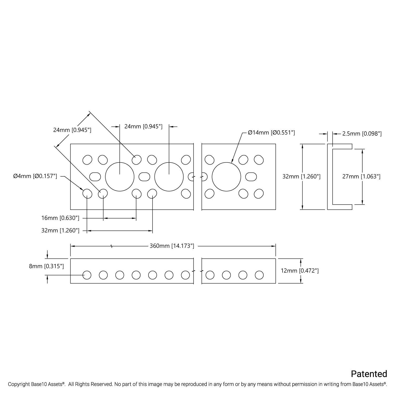 This 14 Hole, 360mm Length Mini Low-Side U-Channel brings a compact core structure to your build. Its minimized footprint allows for strong small-scale construction utilizing its goBILDA® 16mm pattern holes. You can attach standoffs, spacers, block mounts, beams, and more—including motors!