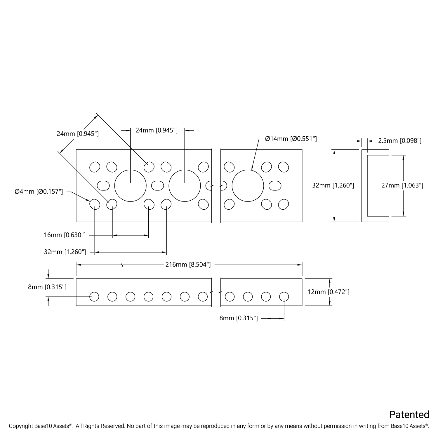 This 8 Hole, 216mm Length Mini Low-Side U-Channel brings a compact core structure to your build. Its minimized footprint allows for strong small-scale construction utilizing its goBILDA® 16mm pattern holes. You can attach standoffs, spacers, block mounts, beams, and more—including motors!