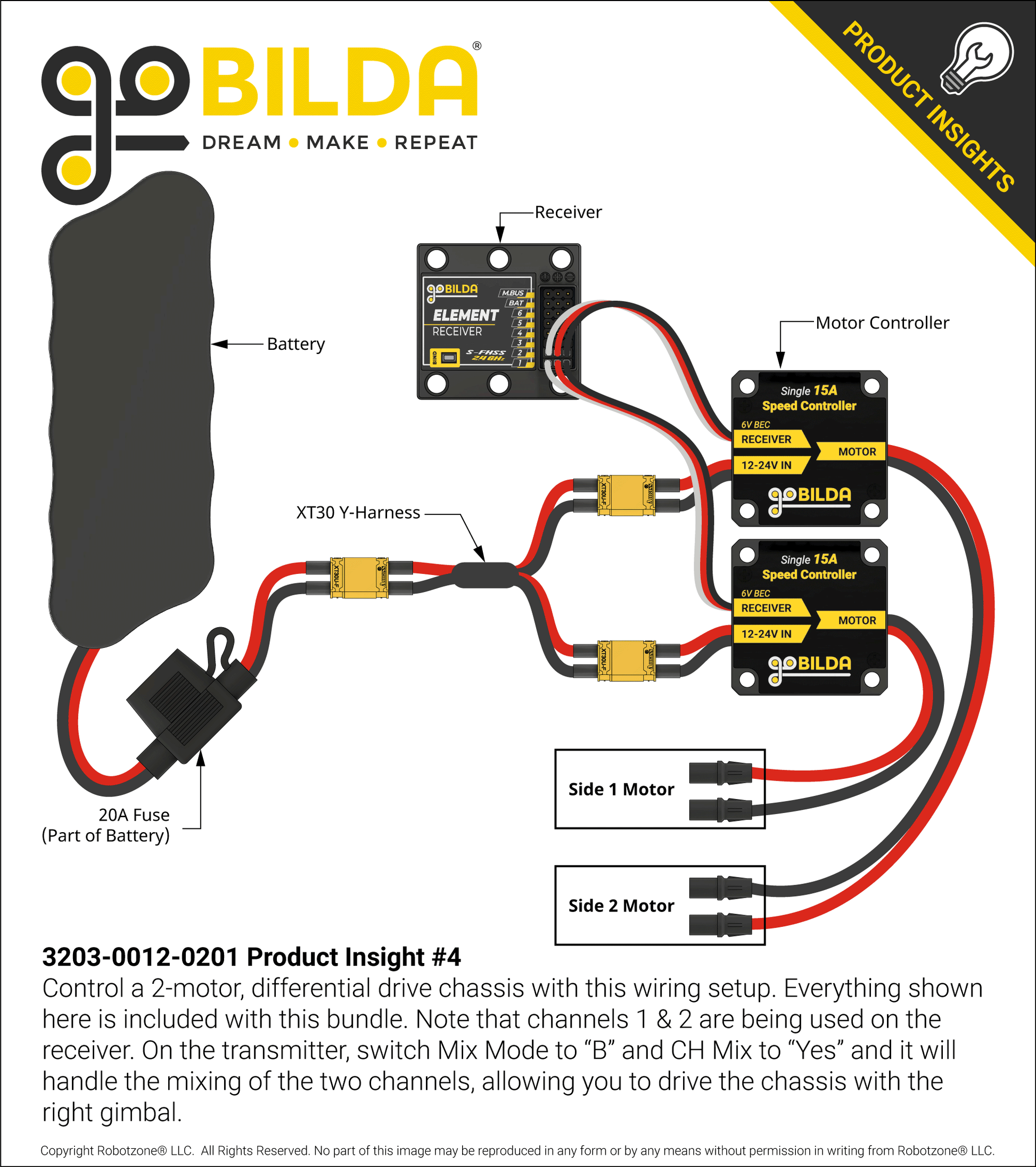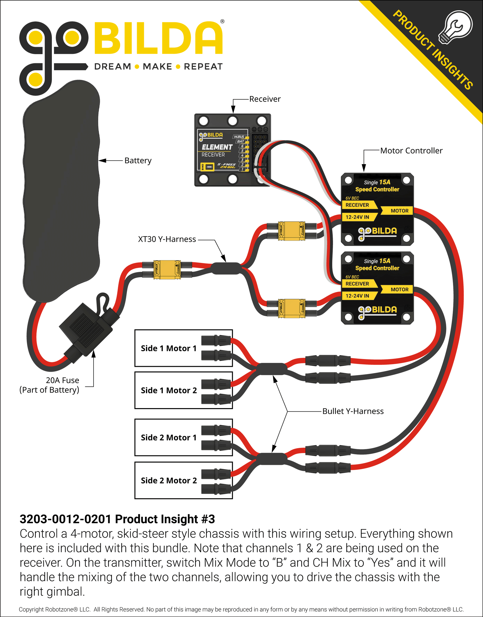No soldering required—this bundle is plug-and-play! All the wiring you need to get your chassis up and running is included in the bundle. If you need additional wire length between components, you can choose from several extensions in the Related Products section below.