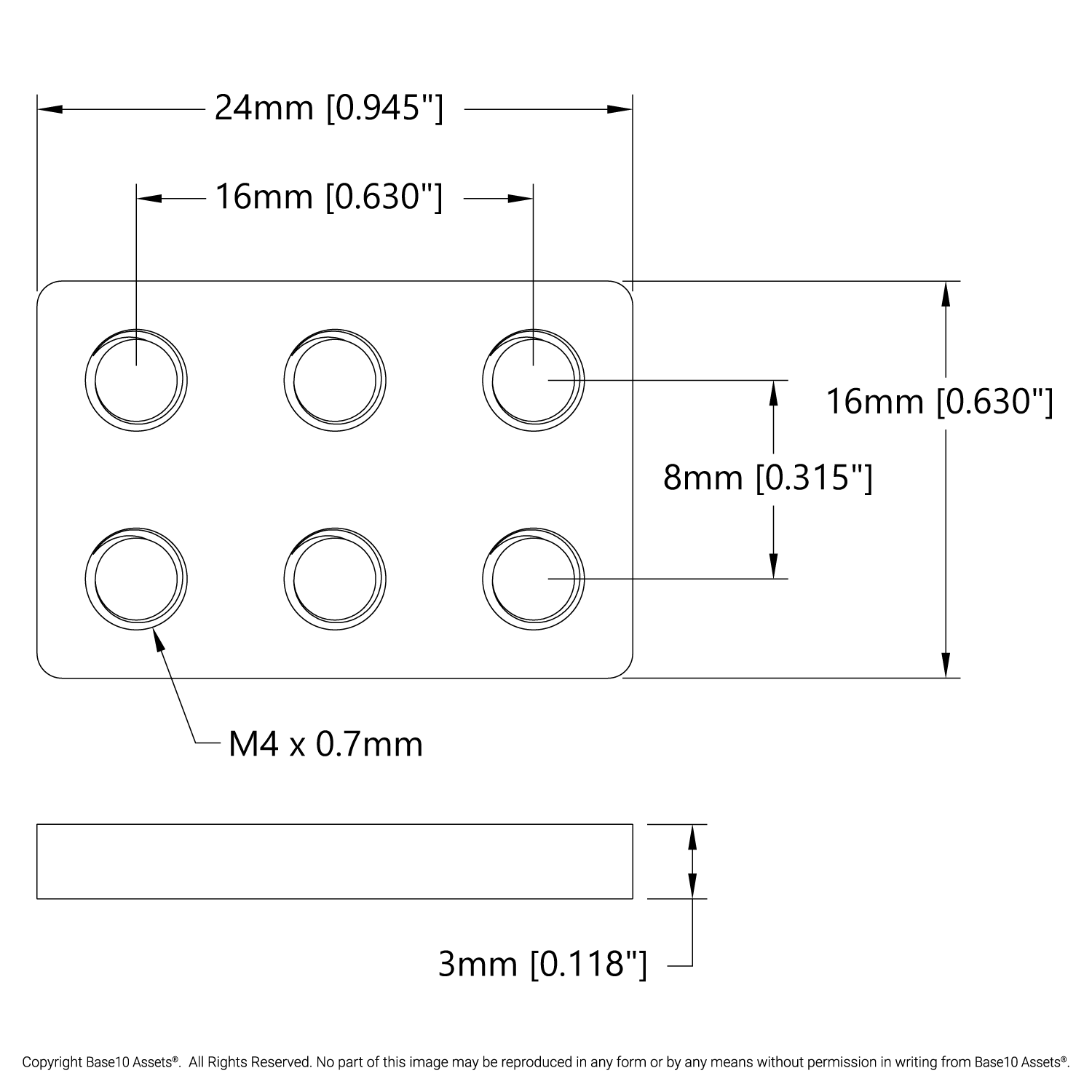 These steel screw plates are excellent general-purpose screw plates to have on-hand when building. Each plate’s three on-pattern threaded holes give you multiple fastening options while dispersing the loads exerted on the structure they are holding together.