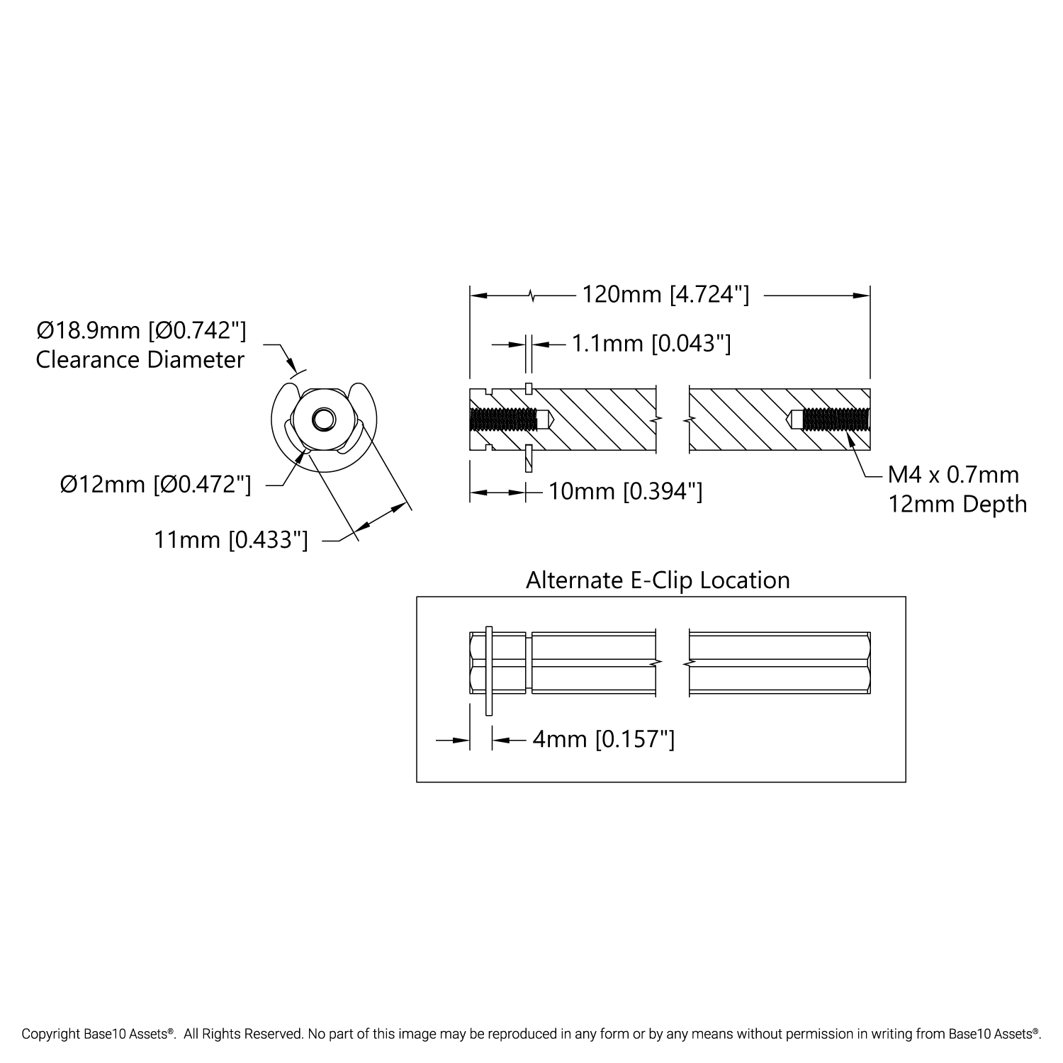 Each end of the shaft has an M4 threaded hole. This versatile feature means you can use the shaft as a standoff. You can also insert a screw (and washer, if needed) to constrain a component to the end of the shaft.