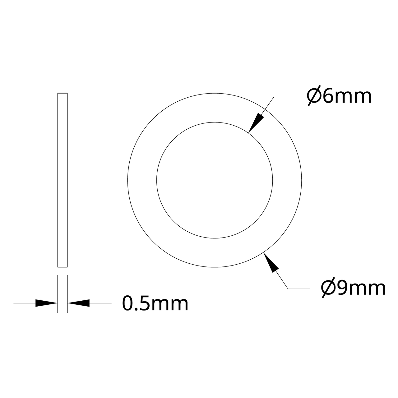 These 0.5mm thick stainless steel shims are intended to provide a small amount of necessary space between a 6mm bearing, and the next component in your assembly. Since the inner race and outer race of most bearings share the same thickness, there’s potential for an item that extends over the outer race to scrape as it rotates. By adding a shim, that part can rest against the shim and rotate freely without contacting the outer race.
