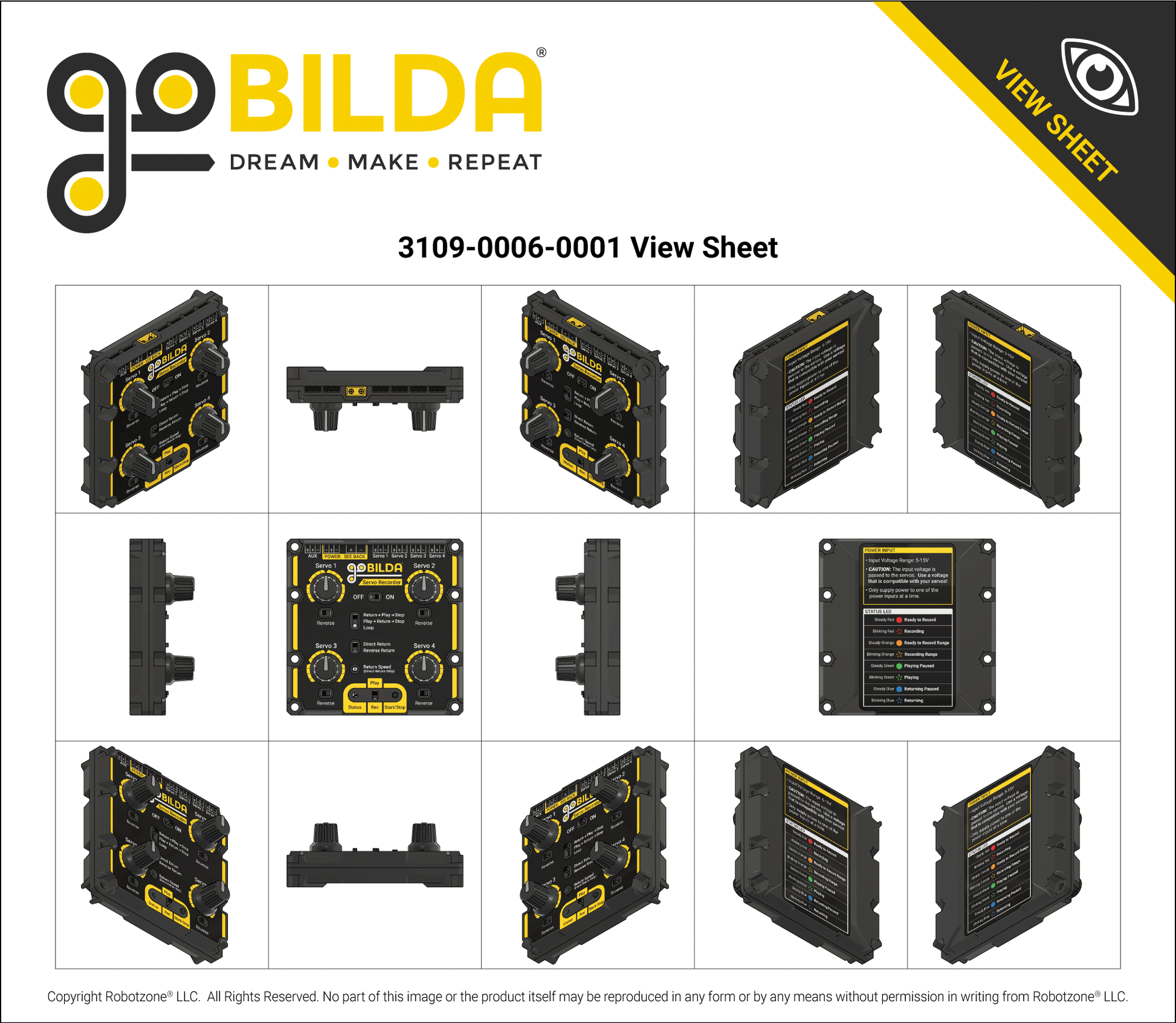 Each servo connected to the Servo Recorder can be constrained to a user-defined range of motion. It’s easy to set these ranges, and there’s no computer required! Just follow these steps: