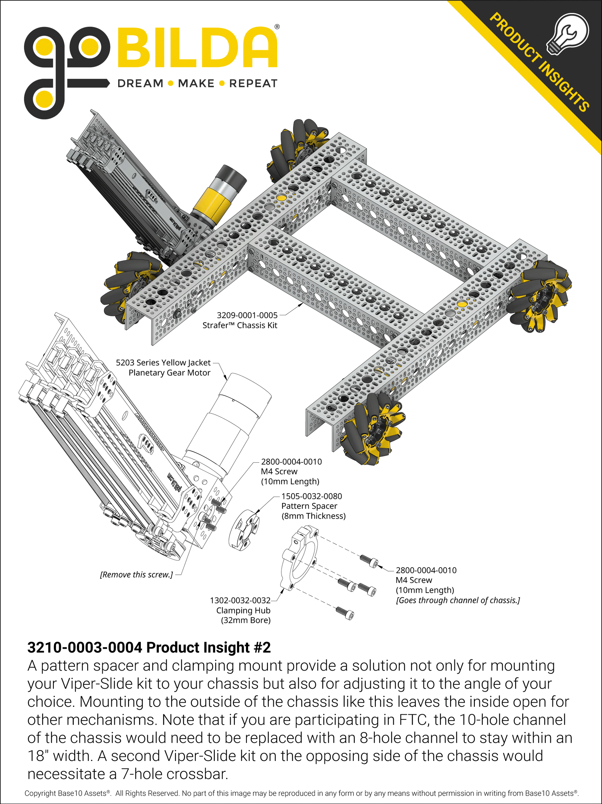 Just install a motor of your choice to get the Viper-Slide Kit up and running! The kit’s 1201-0043-0005 Pattern Mount and 8mm REX™ Sonic Hub are both super-compatible with whatever goBILDA® 5203 Series Yellow Jacket Planetary Gear Motor you choose.