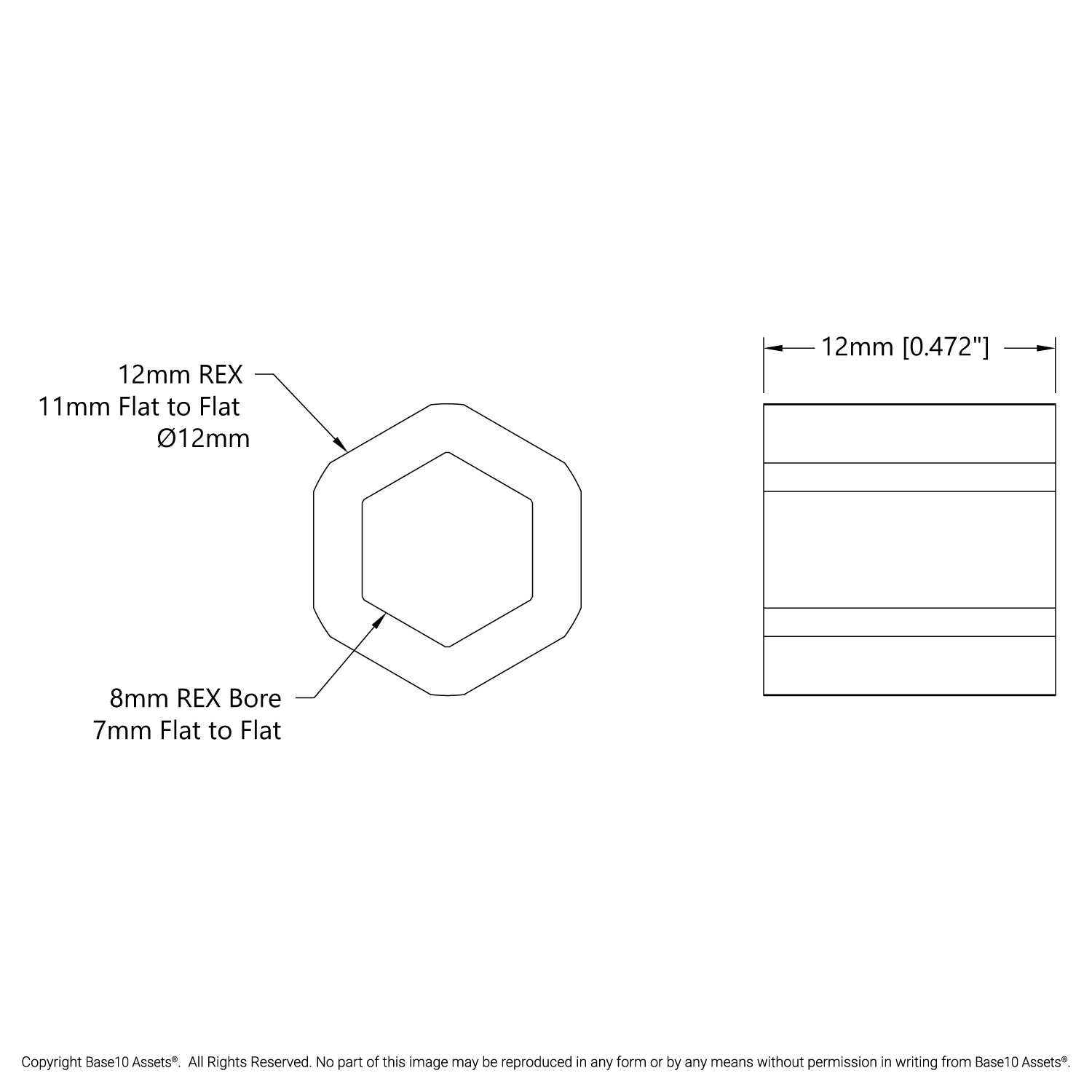 This 12mm length, 8mm REX™ bore spacer is designed for sliding onto an 8mm REX™ shaft to create space between parts. Your choice of spacer length can ensure the correct alignment of drive components, such as gears and sprockets, as well as axially restrain components (such as bearings) to provide for a well-spaced and solid build!