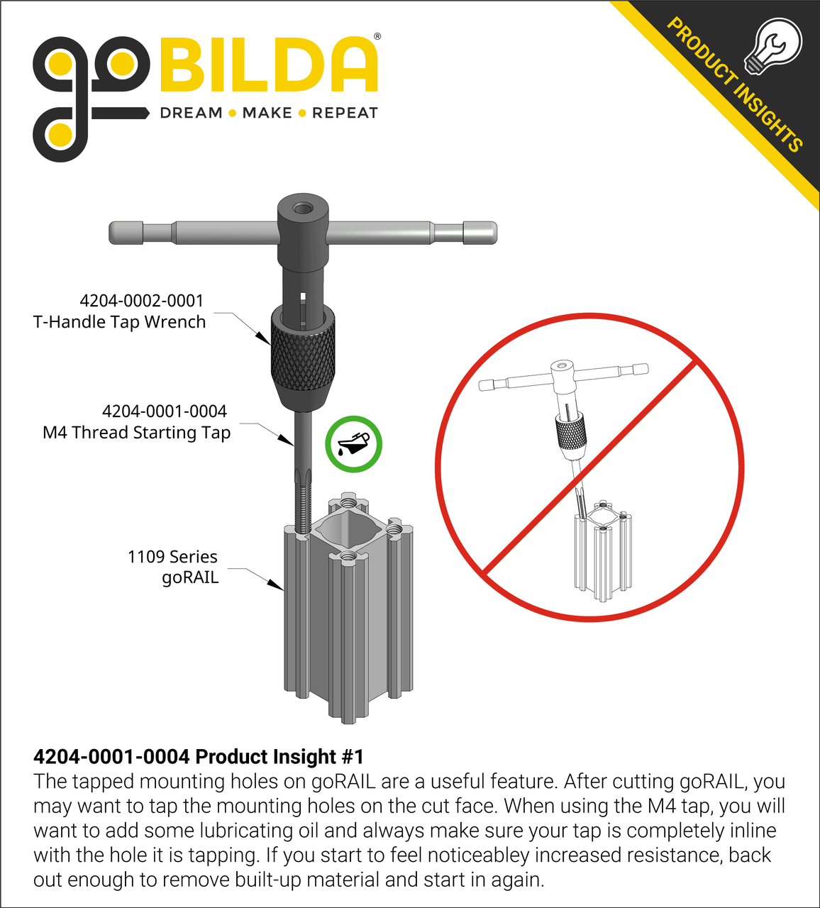 This M4 x 0.7mm thread starting tap can be used for cutting new threads or to clean up damaged threads in a previously tapped hole. This tap has several tapered threads at the end to guide the tap into the hole and begin cutting threads. Recommended for steel, iron, stainless steel, nickel, aluminum, brass, bronze, copper and plastic. Be sure to use lubricant and occasionally back the tap out to clear out shavings during usage.