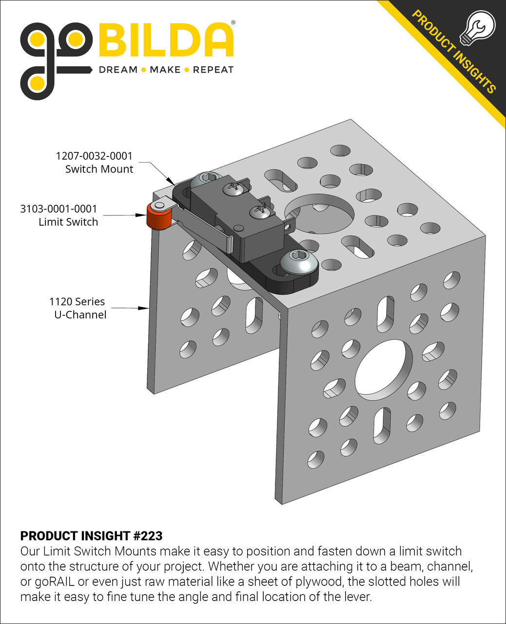 Mount your limit switches to a channel, grid plate, or beam with this mounting kit. The slotted holes enable you to fine-tune the location of the switches so they open and close the circuit at precisely the right time.