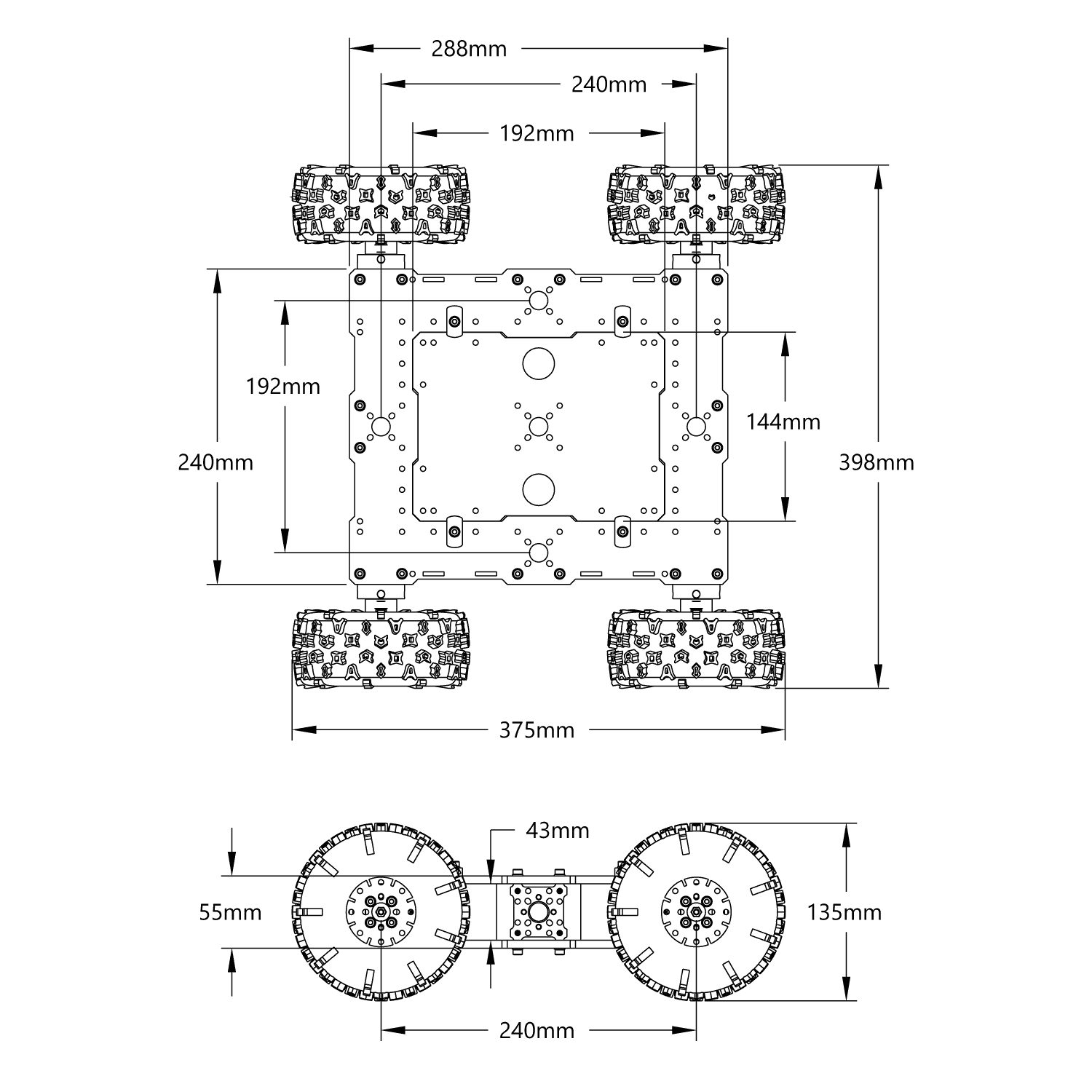 The Recon Chassis Kit is a low-profile, super rugged chassis. Whether you want to mount a camera and headlights to explore a crawl space, or just drive around the back yard, this chassis makes a great base for your next project!