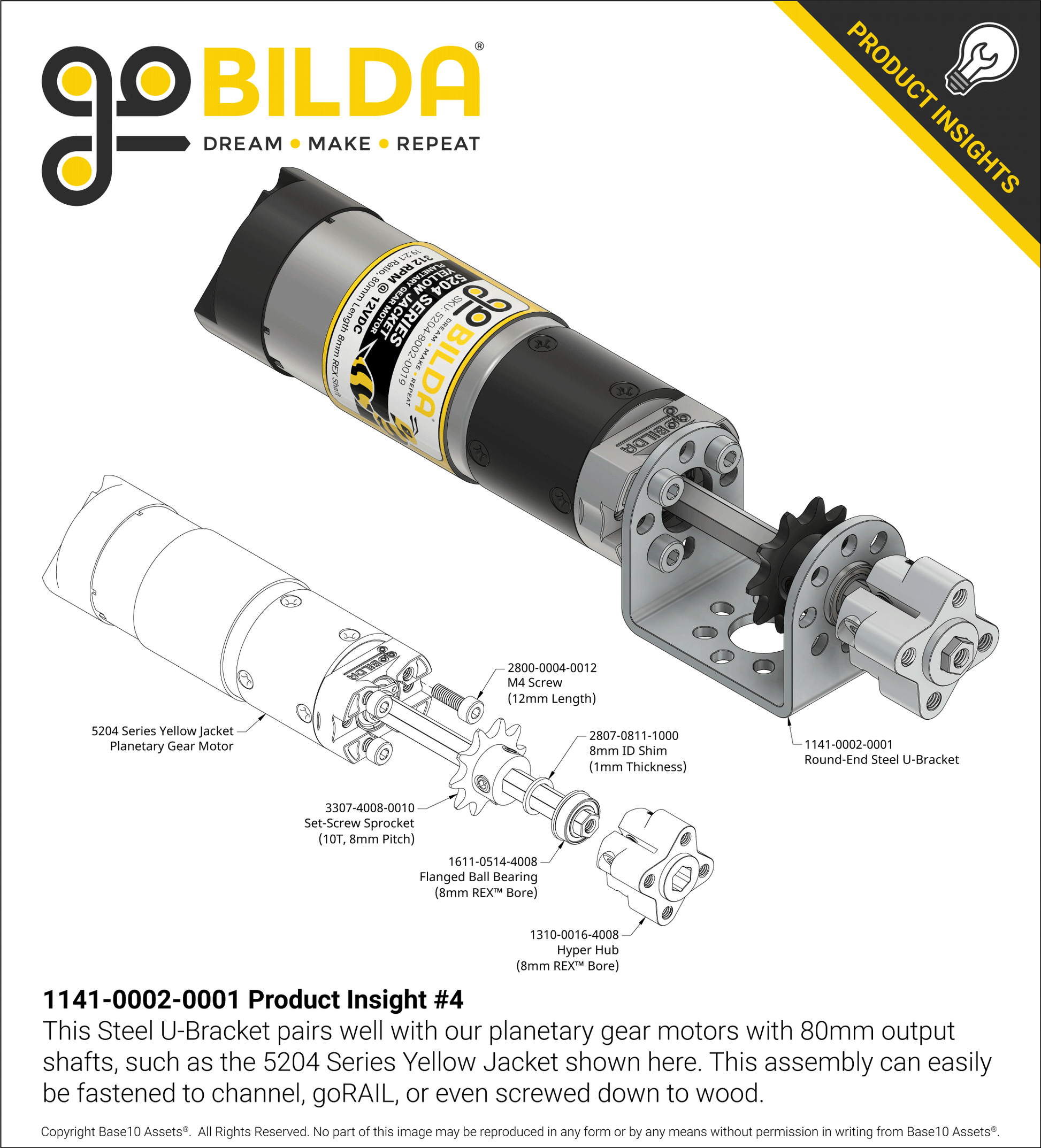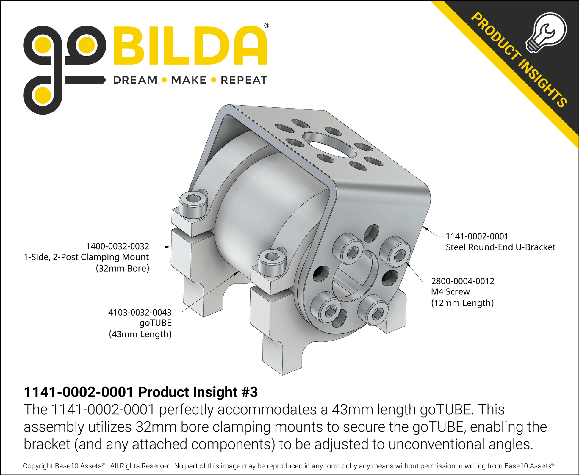 While this incredibly robust Steel U-Bracket rocks the same height, width, and 2.5mm thickness of a 1-hole length of 1120 Series U-Channel, the roundedness of this bracket’s two parallel sides means higher clearance in a wide variety of use-cases—such as dead wheel setups, miter gear assemblies, and rotating applications.