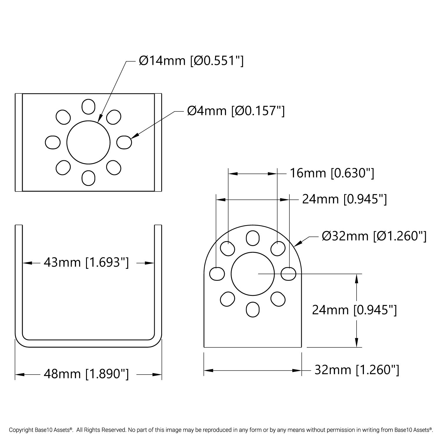 The roundedness also means that the hole pattern is pared down to the essentials, providing a huge variety of mounting options via the goBILDA® 16mm square pattern surrounding the 14mm center holes.
