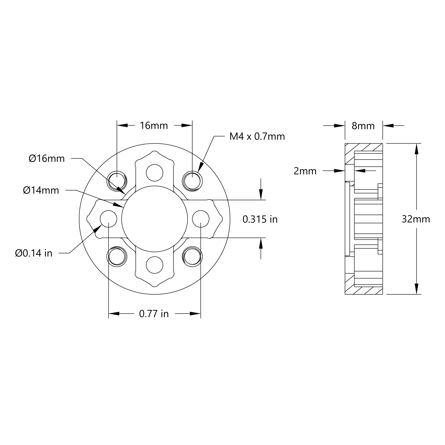 As an added bonus, 1mm deep counterbores have been added to both the top and bottom of this adaptor so you can use it in various ways to hold and capture a 1611 Series flanged bearing.