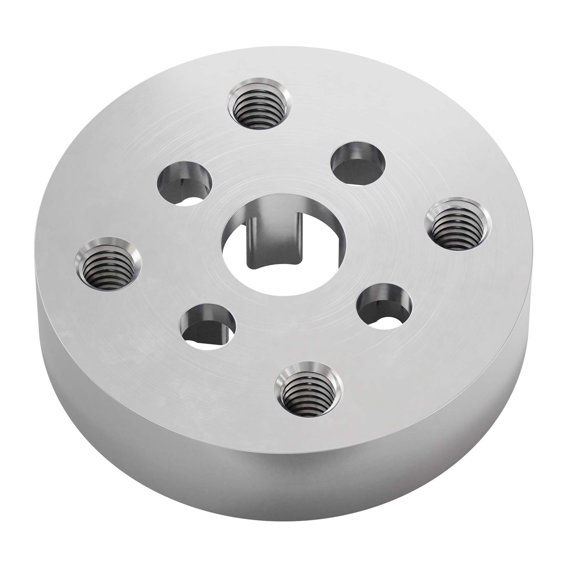 The 8mm center hole–which is smaller than is standard in goBILDA®–matches the center hole used in the Tetrix build system. In this case, it also allows the most popular sizes of shafting (such as 8mm REX™) to pass through the adaptor.
